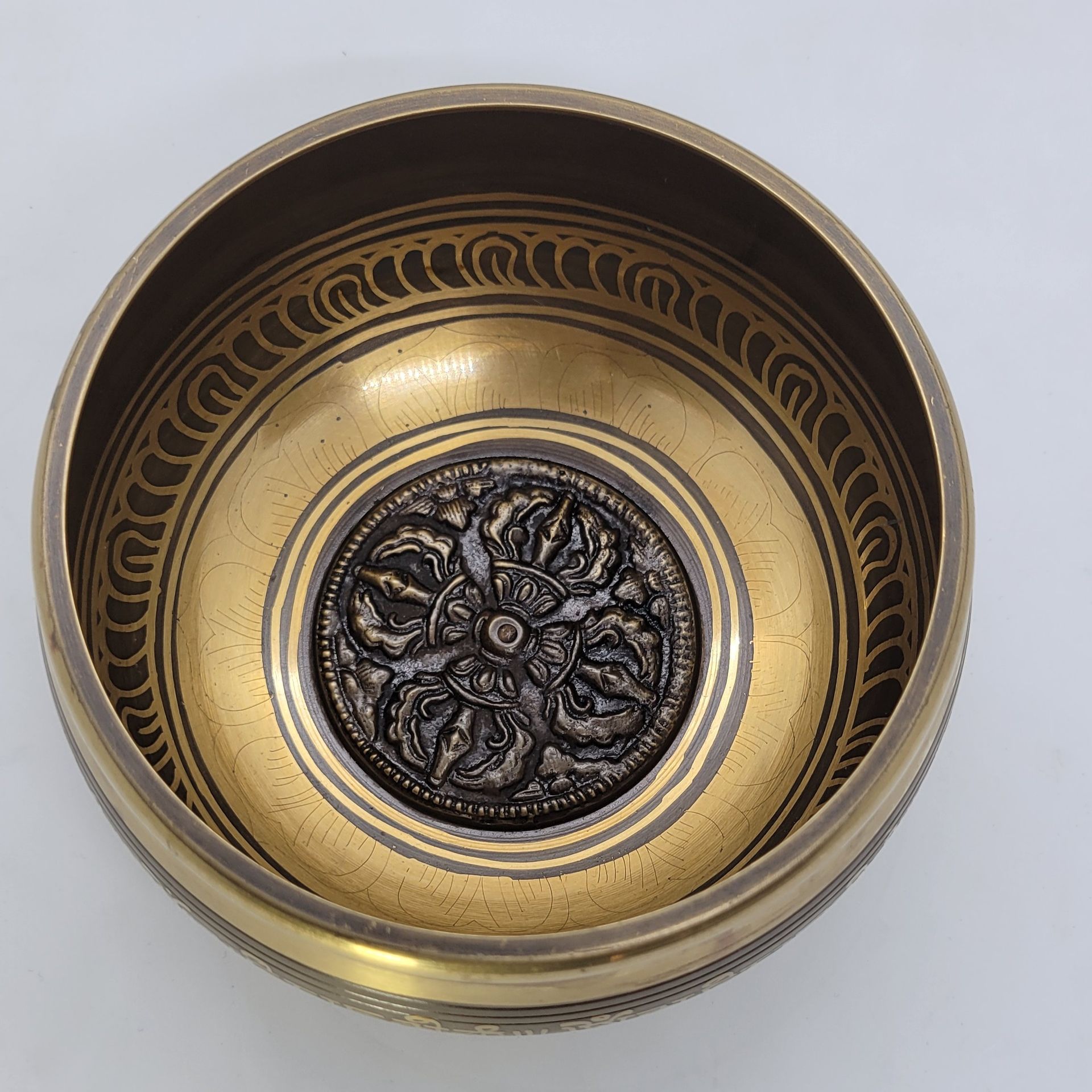 The engraved Singing Bowl is a stunning handcrafted sound tool designed to enhance meditation, sound healing, and spiritual practices. Made from high-quality metal, this bowl features intricate engravings of sacred geometric patterns, including the Flower of Life and the Om symbol and many other symbols, symbolizing universal connection and inner peace.