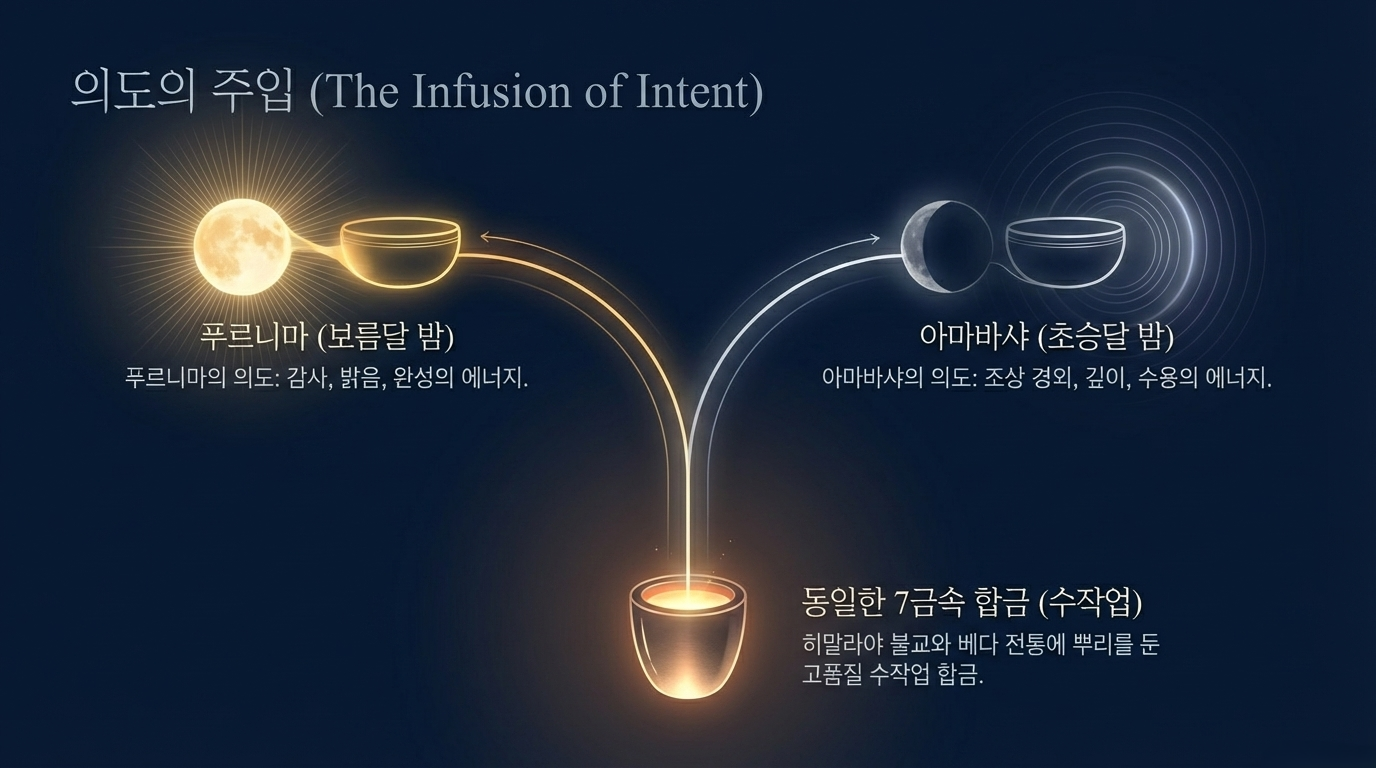 네팔 장인들이 태음력을 그토록 세심하게 따르는 이유를 이해하려면, 히말라야 불교와 베다 전통에서 달이 어떻게 여겨지는지를 알아야 합니다. 달은 단순한 천체가 아닙니다 — 물과 조류, 감정, 풍요, 그리고 영적 수용성을 지배하는 살아있는 힘입니다.