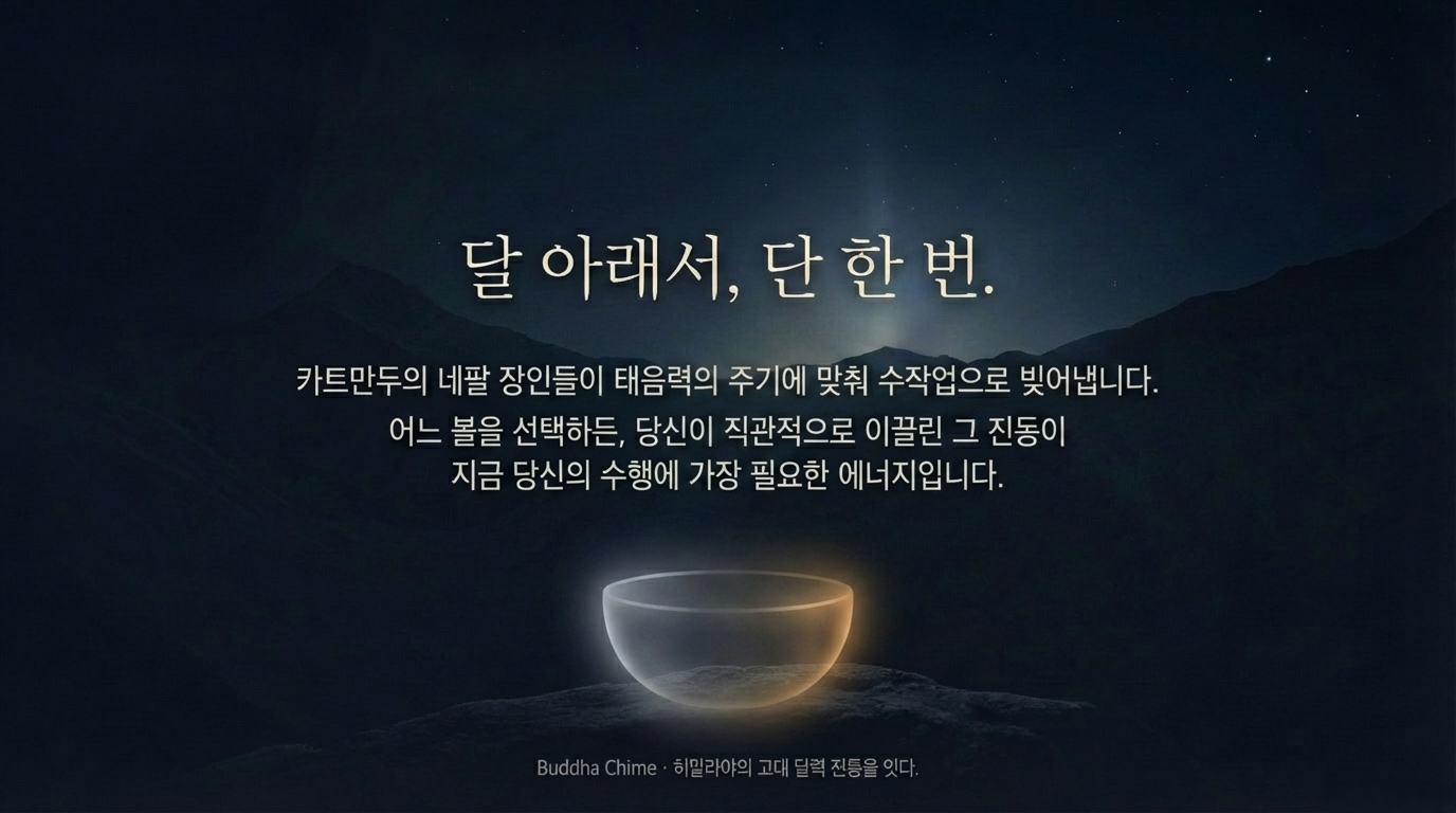 Buddha Chime의 보름달과 초승달 볼은 단순히 달의 이름을 붙인 것이 아닙니다. 수 세대에 걸쳐 이 달력 전통을 지켜온 카트만두 계곡의 장인 가문이 실제로 해당 달 위상에 맞춰 제작합니다.