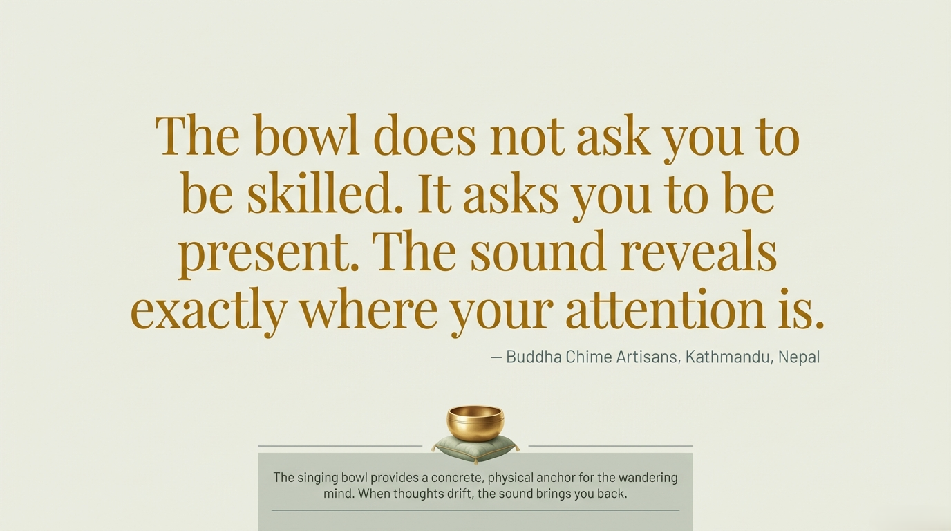 "The bowl does not ask you to be skilled. It asks you to be present. The sound reveals exactly where your attention is."
