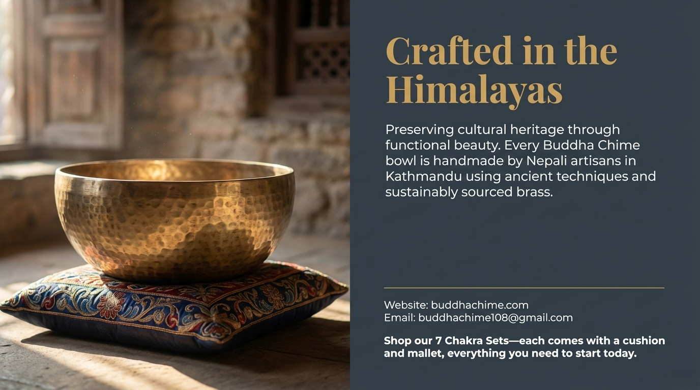 Every Buddha Chime bowl is handmade by Nepali artisans in Kathmandu.